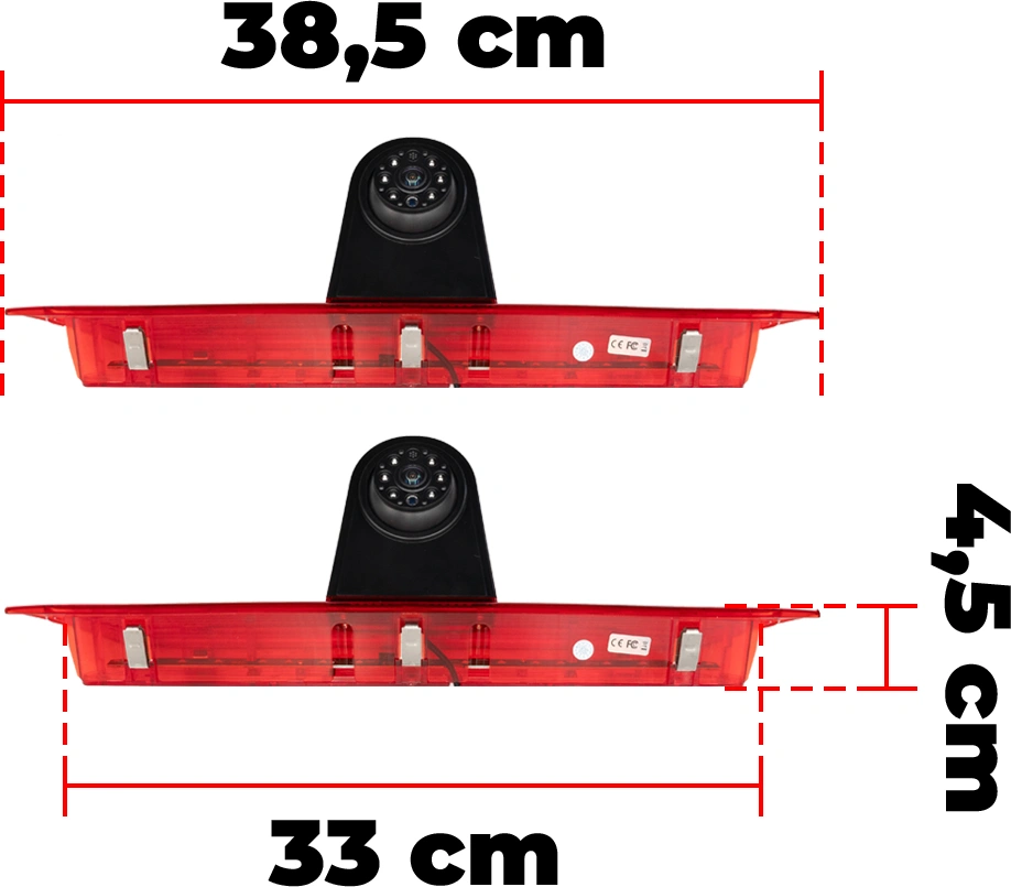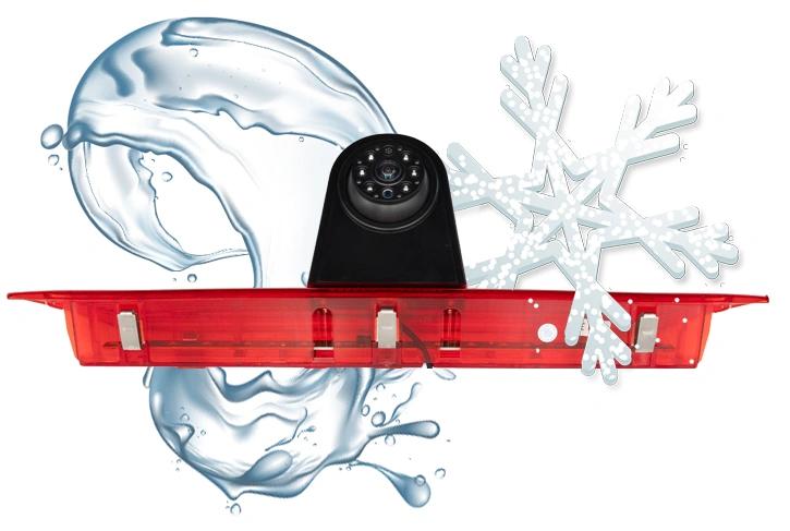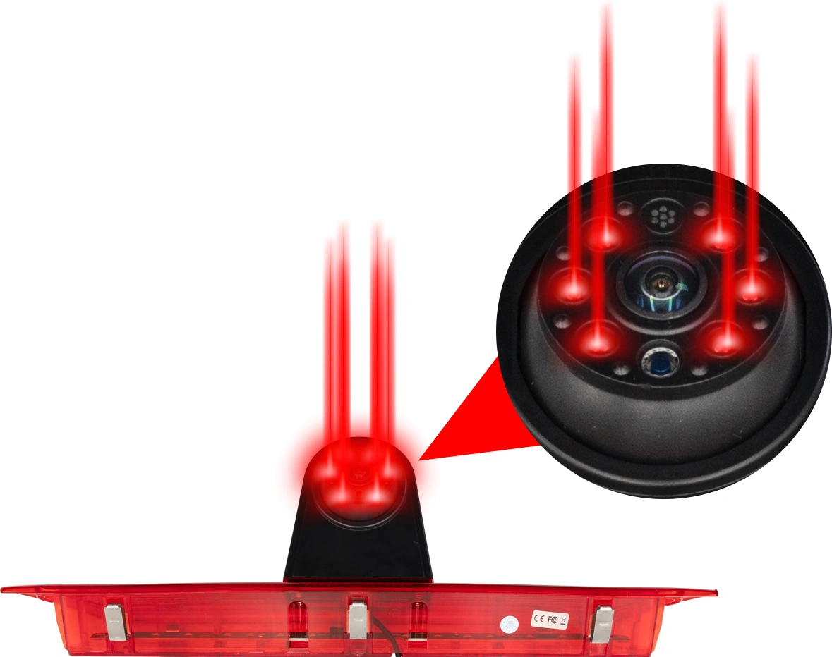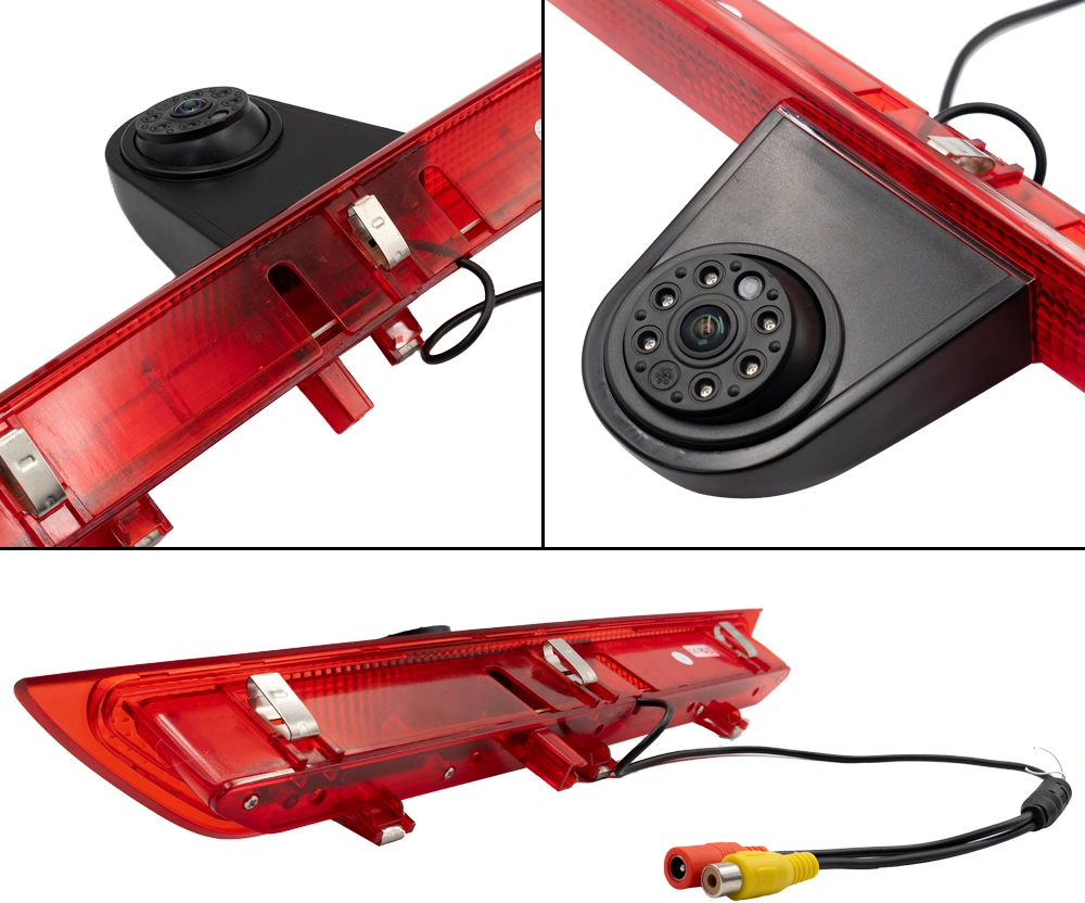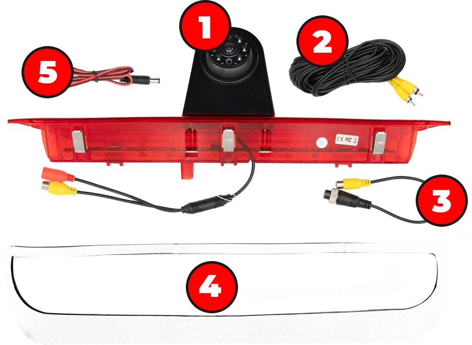 - Kamera cofania z funkcją trzeciego światła STOP – należy podłączyć do fabrycznego przewodu zasilającego lampę.