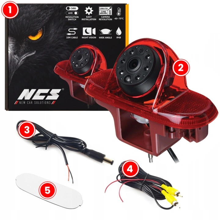 1️⃣2️⃣ Kamera z funkcją światła STOP – podłącz do fabrycznego przewodu zasilającego lampę.