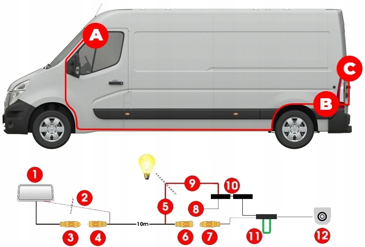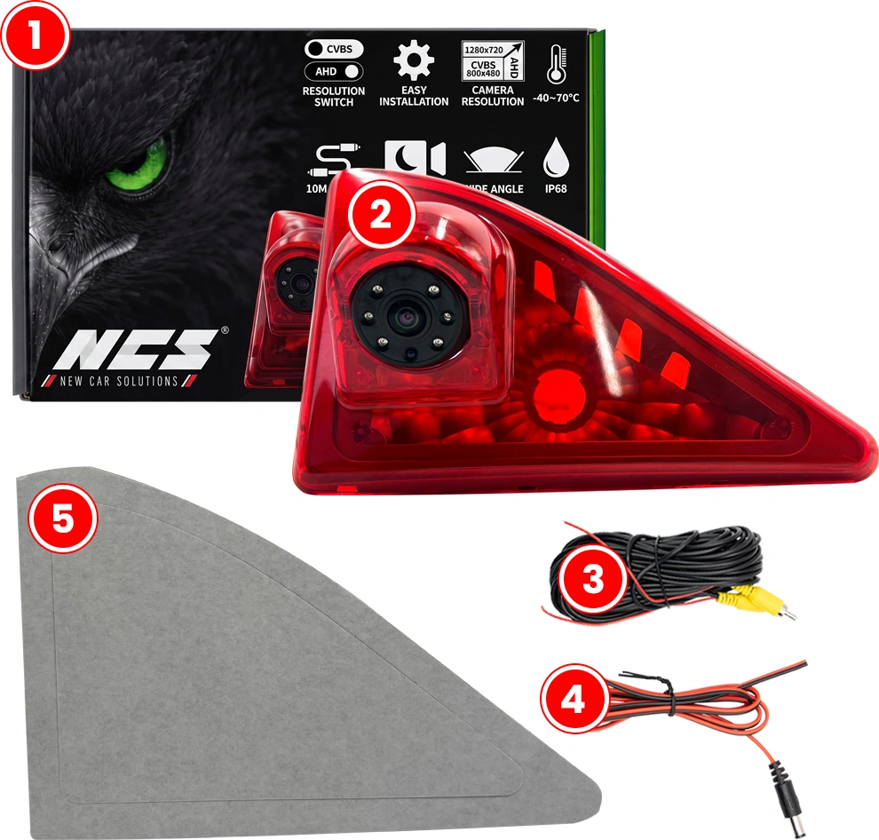 1️⃣2️⃣ Kamera z funkcją światła STOP – podłącz do fabrycznego przewodu zasilającego lampę.