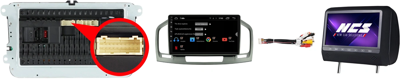 Podłącz zewnętrzny monitor poprzez złącze RCA i wyświetlaj pasażerom ulubione nagrania lub aplikacje.