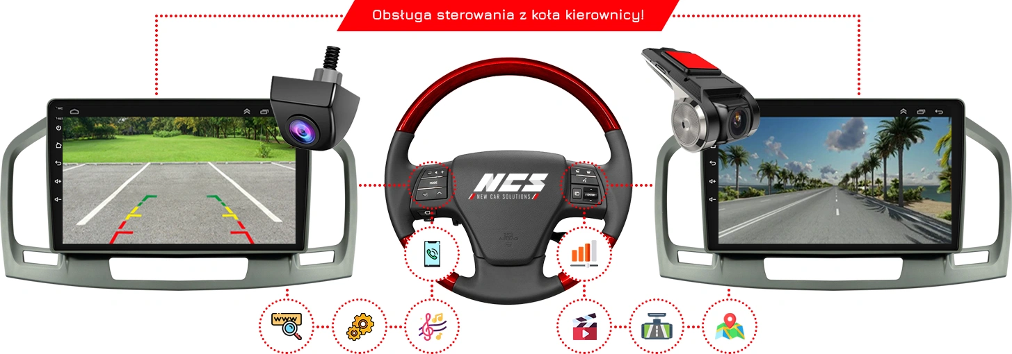 > Odbieranie informacji z CAN-BUS’a (ustawianie sterowania funkcjami z kierownicy, wyświetlanie informacji o spalaniu, przebiegu, wyświetlanie komunikatów o niedomknięciu drzwi, temperaturze, sterowanie funkcjami radia, głośnością itd.). Zwróć uwagę, że funkcje będą działały tylko w przypadku gdy Twój pojazd posiada odpowiednie czujniki.