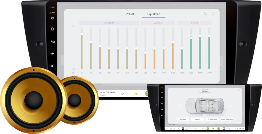 > Rozbuduj system audio samochodu dzięki dodatkowym wyjściom umożliwiającym dodawanie wybranych dodatkowych komponentów takich jak: wzmacniacze czy subwoofery.