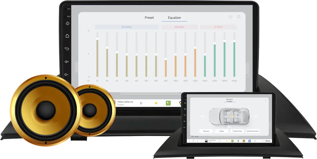 > Rozbuduj system audio samochodu dzięki dodatkowym wyjściom umożliwiającym dodawanie wybranych dodatkowych komponentów takich jak: wzmacniacze czy subwoofery.
