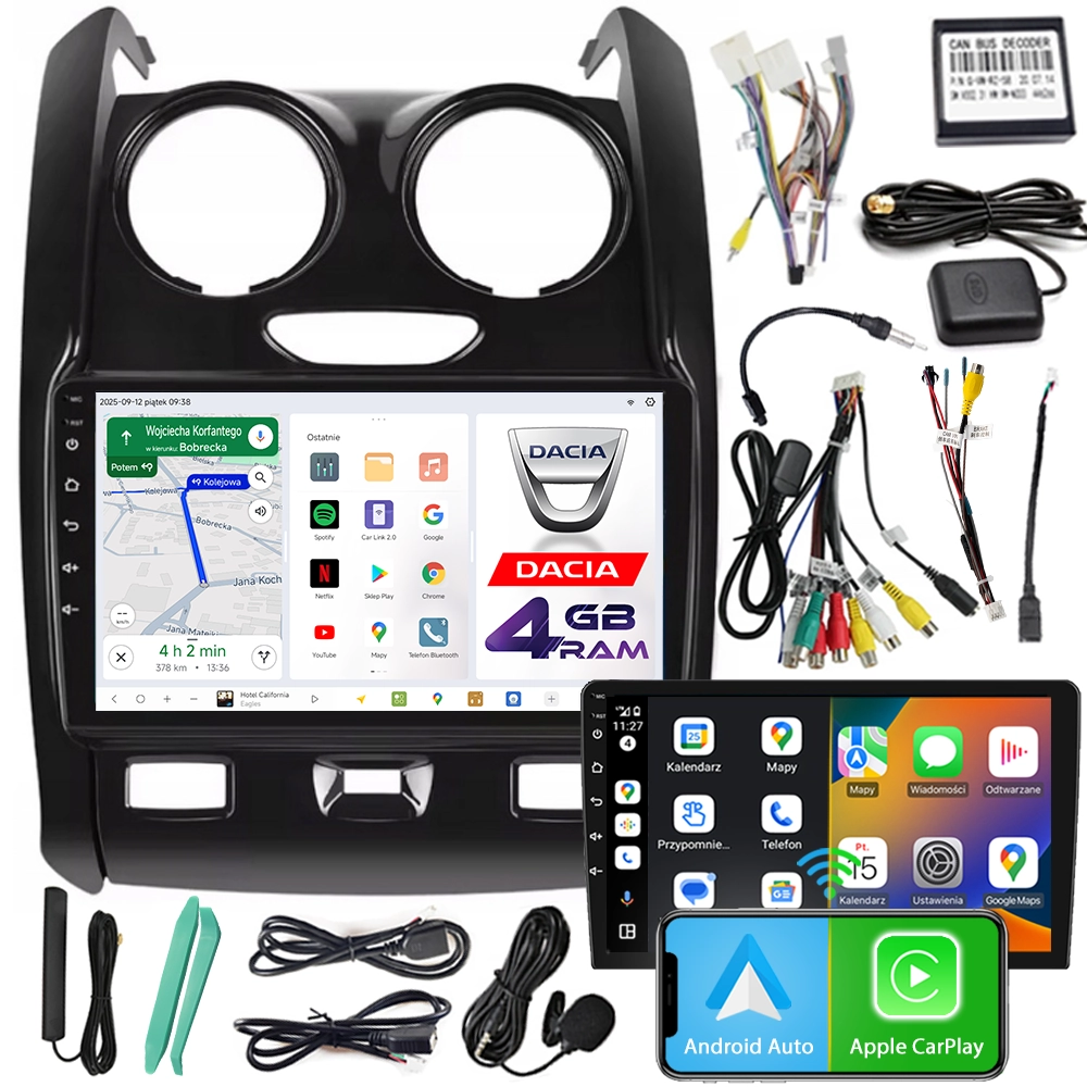 > Integracja z CAN-BUS – wyświetlanie informacji o spalaniu, przebiegu, temperaturze, stanie drzwi i więcej (wymagane odpowiednie czujniki w pojeździe)