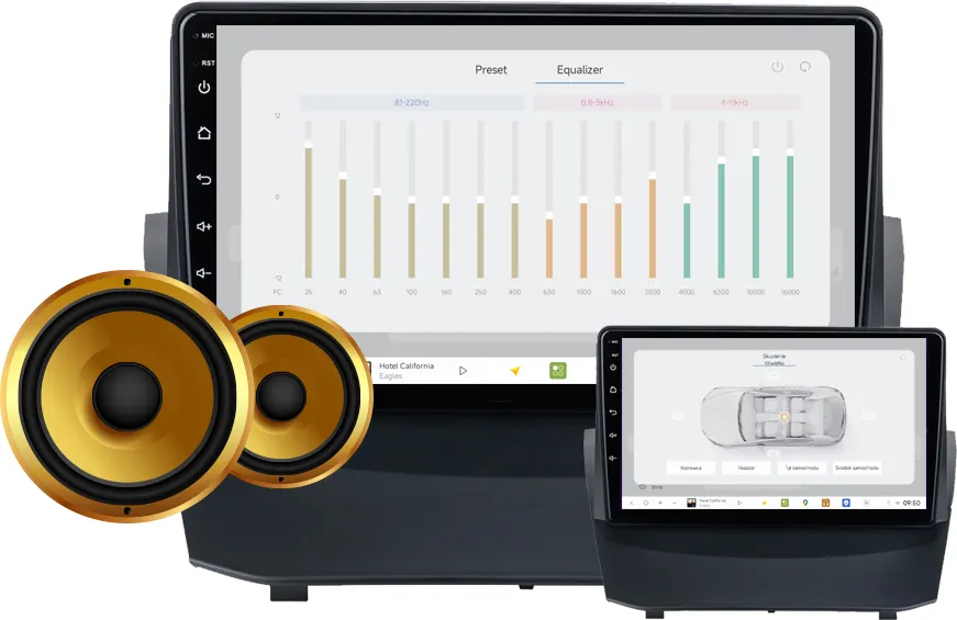> Rozbuduj system audio samochodu dzięki dodatkowym wyjściom umożliwiającym dodawanie wybranych dodatkowych komponentów takich jak: wzmacniacze czy subwoofery.