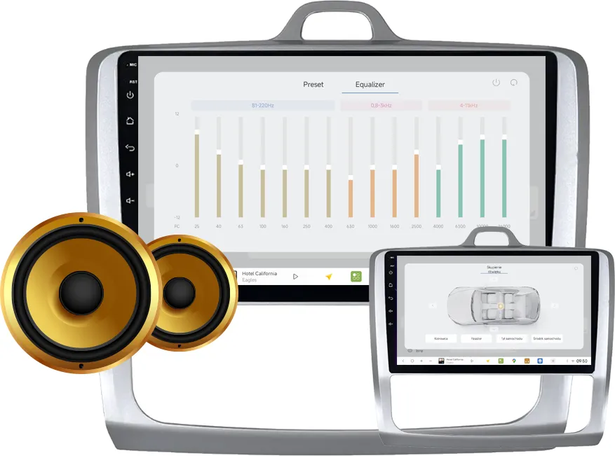 > Rozbuduj system audio samochodu dzięki dodatkowym wyjściom umożliwiającym dodawanie wybranych dodatkowych komponentów takich jak: wzmacniacze czy subwoofery.