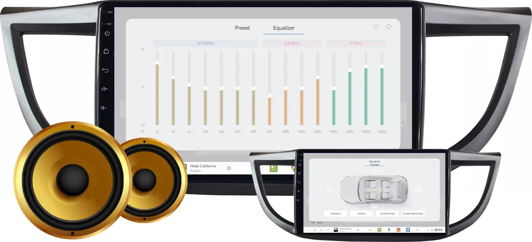 > Intuicyjne w obsłudze ustawienia dźwięku: balance (kanał lewy, kanał prawy) i fader (przód i tył).