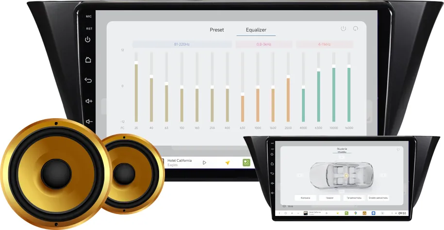 > Rozbuduj system audio samochodu dzięki dodatkowym wyjściom umożliwiającym dodawanie wybranych dodatkowych komponentów takich jak: wzmacniacze czy subwoofery.