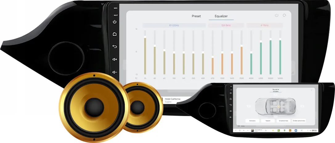 > Rozbuduj system audio samochodu dzięki dodatkowym wyjściom umożliwiającym dodawanie wybranych dodatkowych komponentów takich jak: wzmacniacze czy subwoofery.
