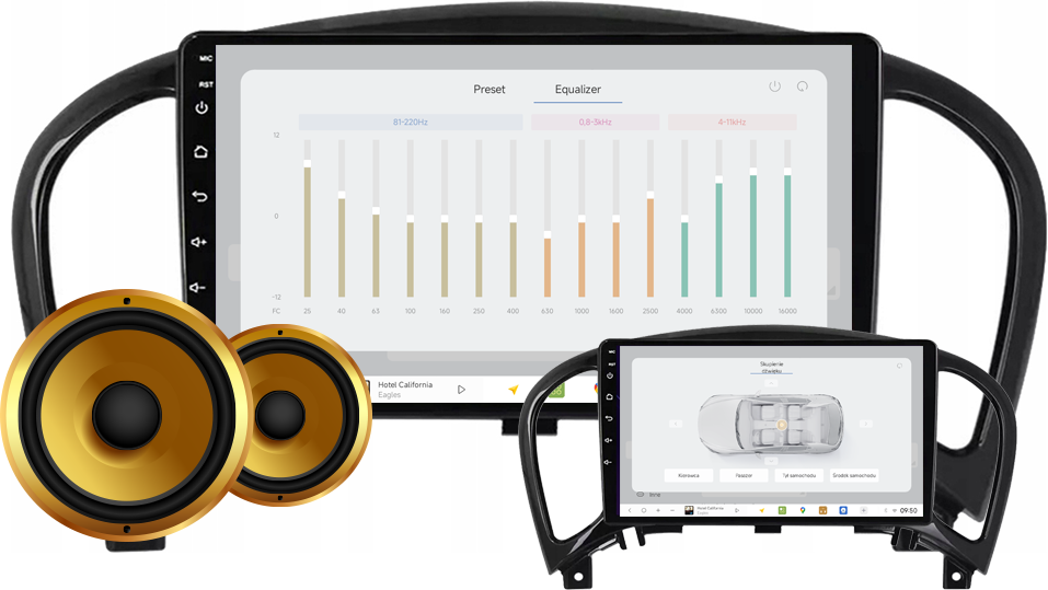 > Intuicyjne w obsłudze ustawienia dźwięku: balance (kanał lewy, kanał prawy) i fader (przód i tył).
