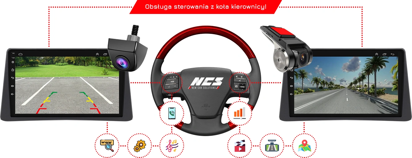 > Sterowanie z kierownicy – pełna obsługa fabrycznych przycisków