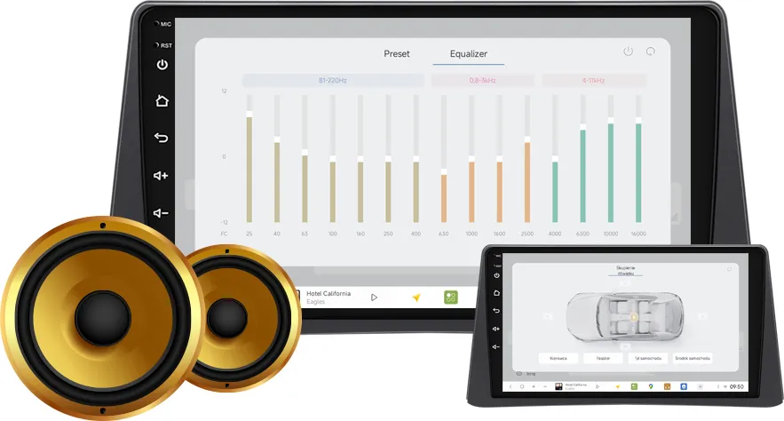 > Rozbuduj system audio samochodu dzięki dodatkowym wyjściom umożliwiającym dodawanie wybranych dodatkowych komponentów takich jak: wzmacniacze czy subwoofery.
