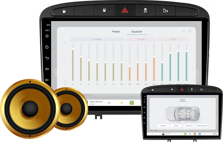 > Rozbuduj system audio samochodu dzięki dodatkowym wyjściom umożliwiającym dodawanie wybranych dodatkowych komponentów takich jak: wzmacniacze czy subwoofery.